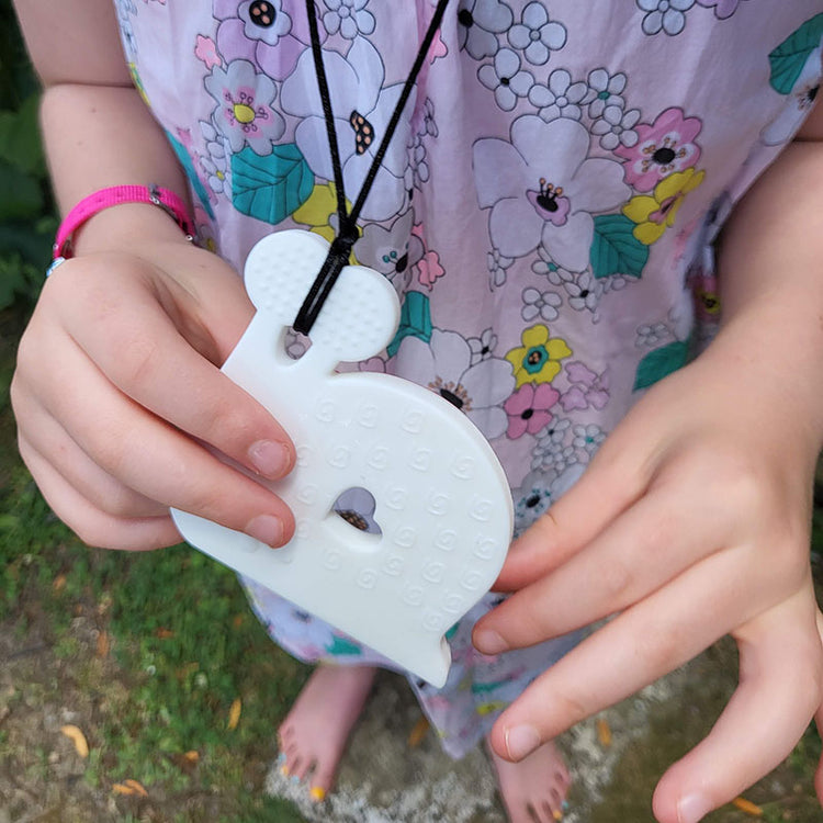 • Some people may chew the clasp and cord, this is not intended due to choking hazard. Discontinue use, and consider the tough guy chew stick that is not a necklace