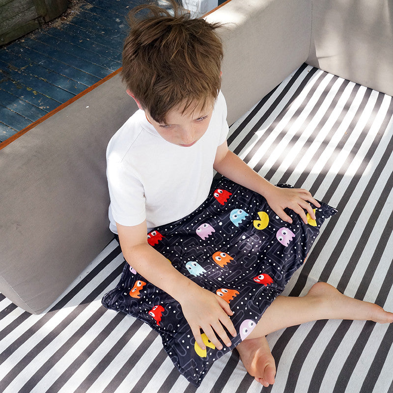 More discreet and portable than a full blanket, this guy is great for chilling and travelling. In the classroom it can even help keep those bums in seats longer, leading to better classroom performance. Slinky minky outer fabric feels like velvet, minky dots on the back, with a cool cotton separate inner, for easy washing.