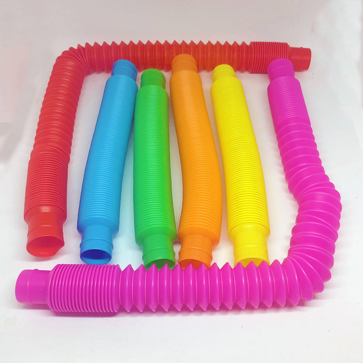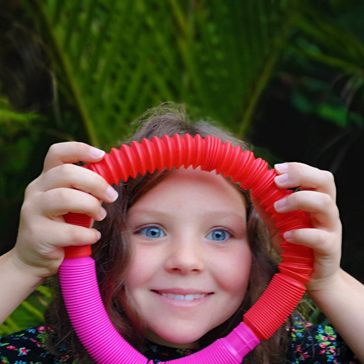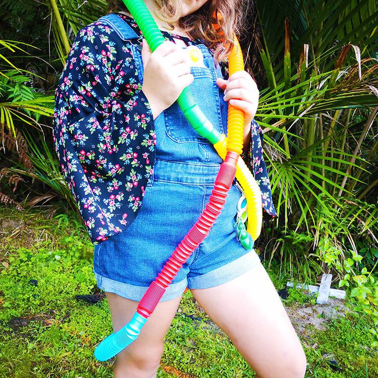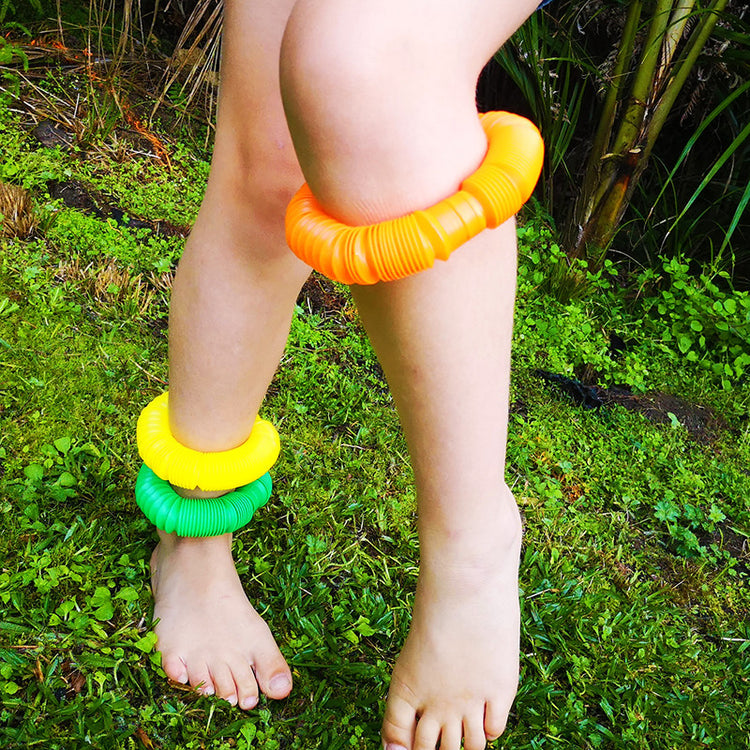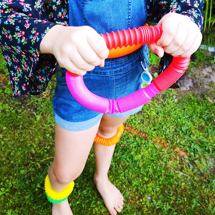 Push n Pull your colourful pop tubes to hear the satisfying truncating and expanding sounds of your pop tubes, and make funky shapes with them.