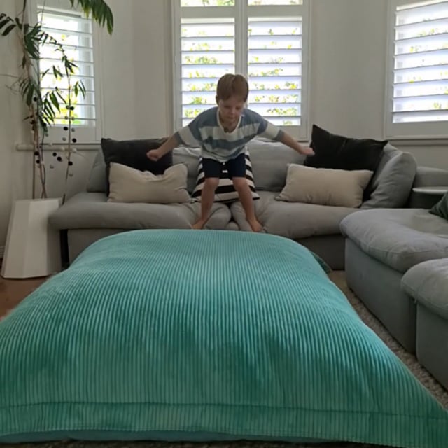 We love this crash pad, its big and soft and versatile. We jump, crash, relax and read on it. Even the cat loves it.