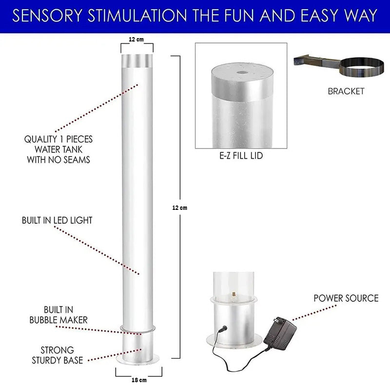A LED Bubble tube is the pièce de résistance in Sensory rooms, Classrooms, or at home; this large 1.2m high bubble lamp exudes calming vibes with the captivating bubbles, light sequences and gentle sound. Dial up or down light intensity, speed of colour change or keep to your favourite colour.
