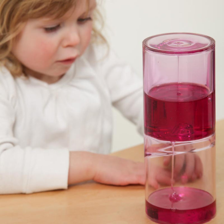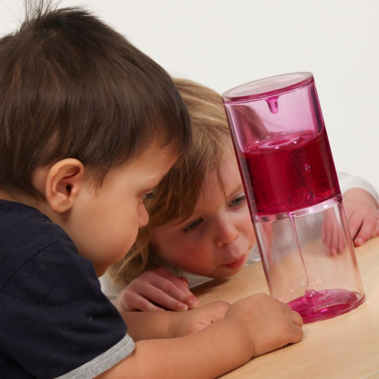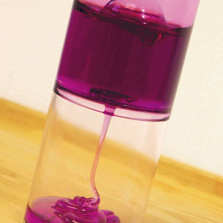 A single large sensory liquid cylinder with thick pink gloopy jelly that oozes and spirals to the bottom. Made from high impact plastic.