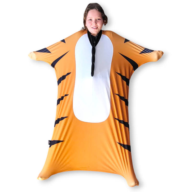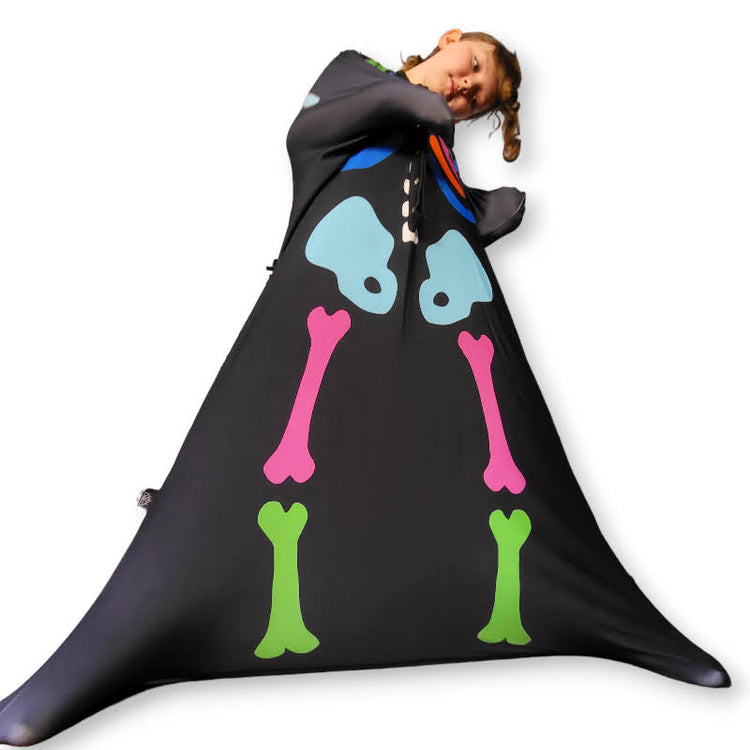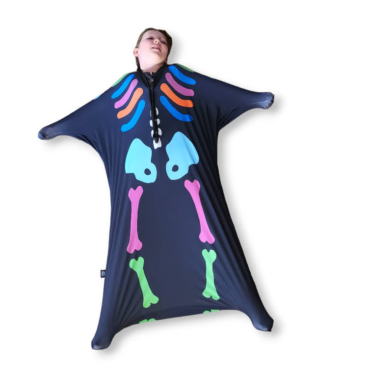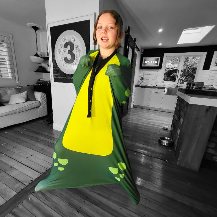 Once inside the sock, kids can enjoy a range of activities and games with their head out or head in. The socks are very stretchy and provide resistance when you move in them. This provides deep pressure through the joints (proprioceptive input) and when you move around in different ways, this provides the vestibular input (balance and movement in space). Or just chill in it, way more fun than a onesie.