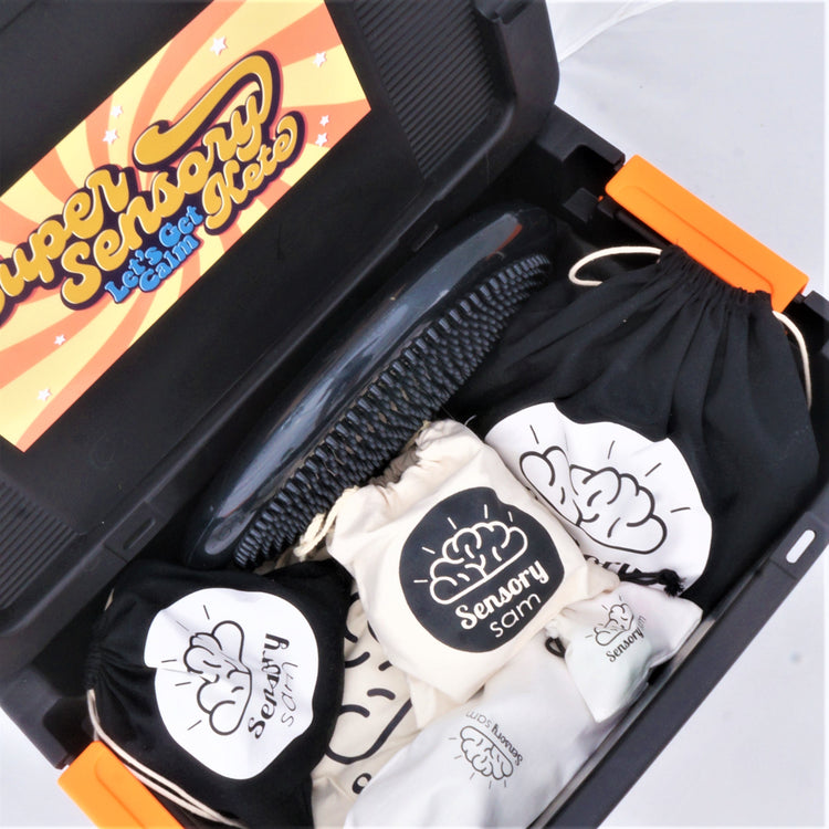 Improve focus with our Largest kit the Ultra Sensory Kete! Filled to the brim with with our bestest sensory solutions including our popular Sensory Space Swing. Our Kete helps kids channel their energy, regulate their emotions and improve concentration. Oh and don't forget fun! Heavy duty box will keep your stash safe and canvas Sensory Sam bags will keep it organised.