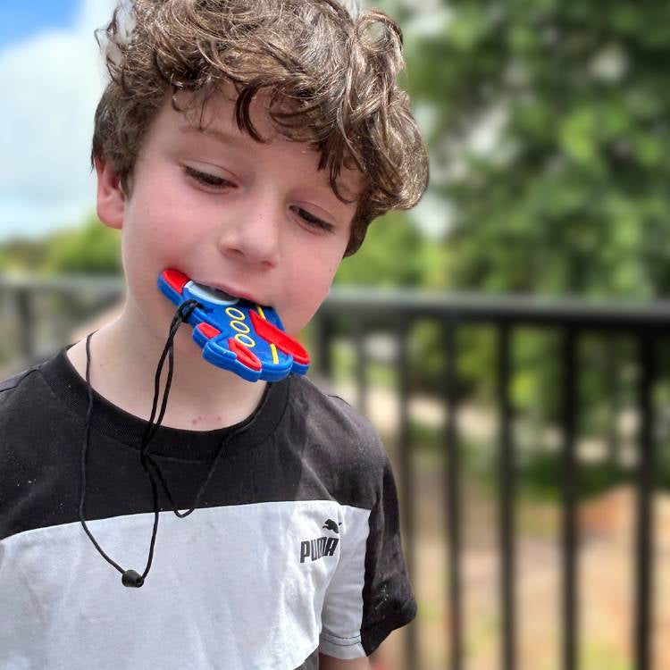 Buckle up for chewing fun! This airplane-shaped chewie necklace is perfect for fidgety flyers and sensory seekers of all ages. Durable, food-grade silicone keeps little hands (and mouths) happily occupied during flights, car rides, or everyday adventures. Discreet enough to wear, tough enough to withstand serious chewing. A giftable way to support focus and calm—no turbulence required.