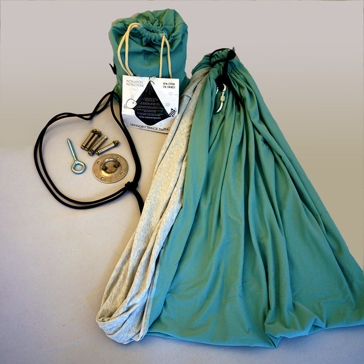 Made out of a double layer of super soft cotton spandex (reversible) this truly multi-functional swing encourages movement and exercise and can be used when sitting, standing or lying down. The kids can climb in the swing, stretch out and move around inside the swing, they learn body awareness, balance, motor planning and spatial skills. A fun, private space to bounce, swing, spin or just lie motionless while enjoying the movement. A must swing for your clinic, home or school.