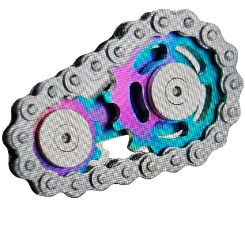 Spin and roll this weighty machinery from the centre wheel, or roll out the chain on your skin and hands, for that ultimate tactile vestibular feedback.