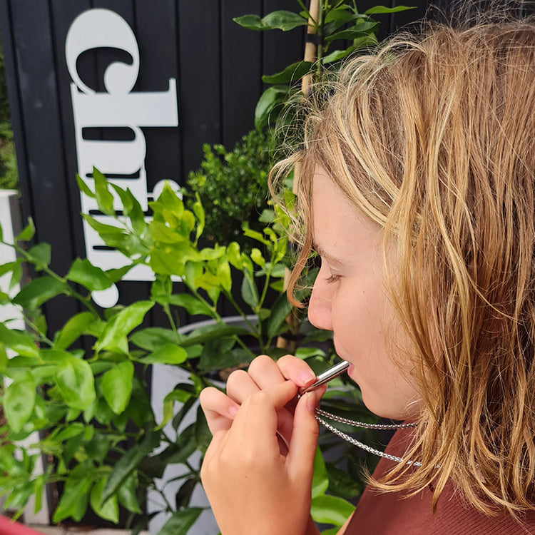 The mindful Breath pendant is designed to guide and help you breathe properly by extending the exhales (making them longer than your average). When your exhalation is longer than your inhalation you are triggering your parasympathetic system to calm your mind and body.