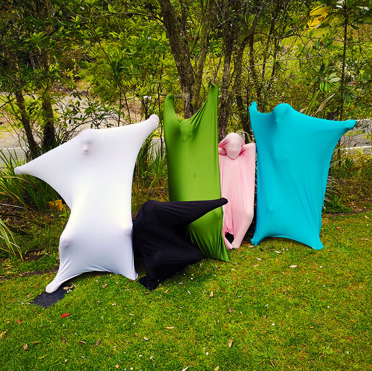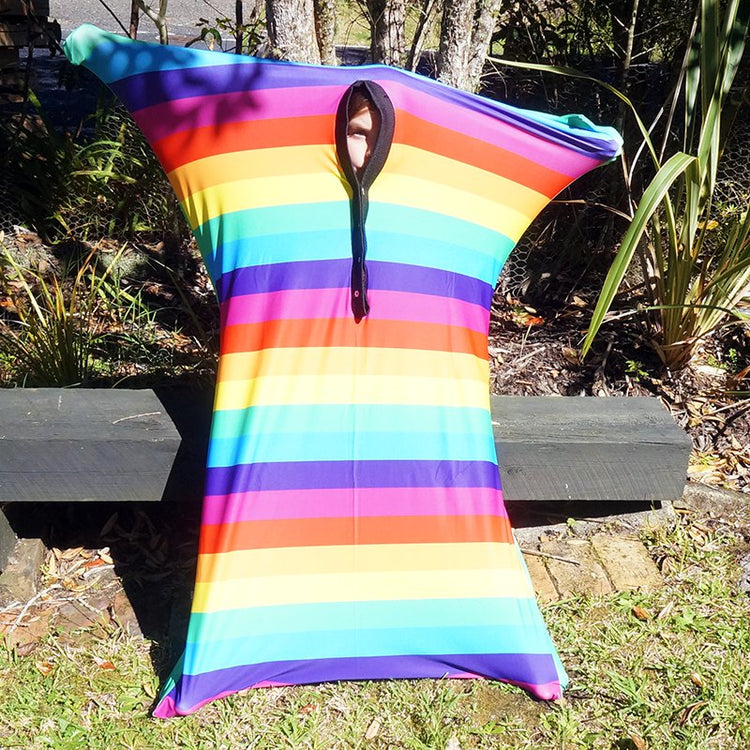 Once inside the sock, kids can enjoy a range of activities and games with their head out or head in. The socks are very stretchy and provide resistance when you move in them. This provides deep pressure through the joints (proprioceptive input) and when you move around in different ways, this provides the vestibular input (balance and movement in space). Or just chill in it, way more fun than a onesie.